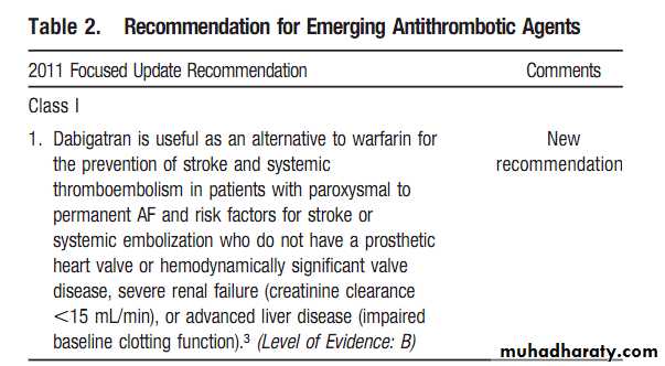 Recommendation for Use of Oral Direct Thrombin Inhibitor Anticoagulant Agents