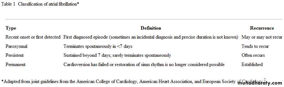• Atrial fibrillation is common and highly variable in its clinical presentation and evolution; it causes substantial morbidity and mortality, including impaired quality of life, heart failure, systemic emboli, and stroke• The first priority is to control heart rate (if tachycardia is present) and provide adequate antithrombotic treatment for preventing complications of embolism
