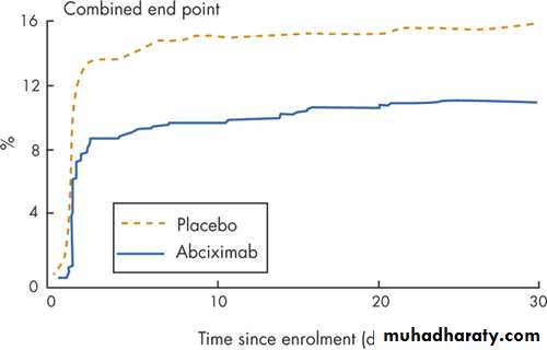 The evidence from which this conclusion was derived comes from a variety of studies; however, it is clear from these studies that benefit is, in general, confined to patients also undergoing percutaneous coronary intervention.9 17 Thus, if these agents are to be used it should be with the intention of undertaking angiography and revascularisation where possible. Abciximab (a monoclonal antibody fragment against the IIb/IIIa receptor) is not recommended by NICE in the medical treatment of acute coronary syndrome since the GUSTO-IV acute coronary syndrome trial18 showed no benefit from abciximab in this context.