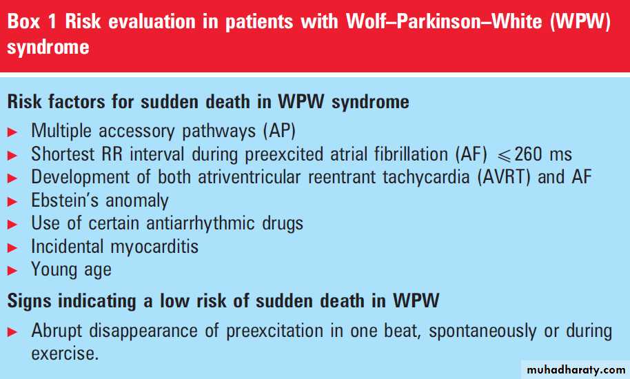 Although its natural historyis often benign in terms of survival, SVT can be potentially fatal in certain circumstances, which has important implications for choice of treatment Arrhythmias associated with APs in the WPW syndrome may be life threatening, related to preexcited AF degenerating into ventricular fibrillation due to fast AV conduction over an AP with ashort anterograde refractory period (box 1).3
