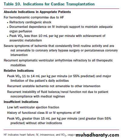 Stage D designates patients with truly refractory HF who might be eligible for specialized, advanced treatment strategies, such as mechanical circulatory support, procedures to facilitate fluid removal, continuous inotropic infusions, or cardiac transplantation or other innovative or experimental surgical procedures, or for end-of-life care.