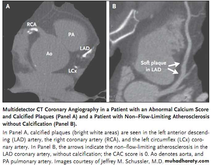 It should also be remembered that a CAC score of 0 does not mean that CAD is absent,particularly in younger patients who may have soft fatty atheromas.