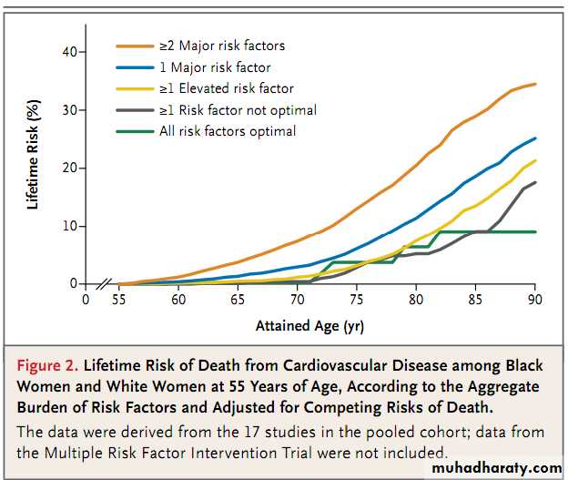 Differences in risk-factor burden translate into marked differences in the lifetimerisk of cardiovascular disease, and these differences are consistent across race and