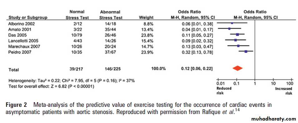 AS, pooling 442 patients, showed a highlysignificant relationship between abnormal exercise
