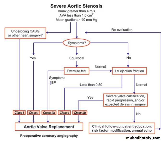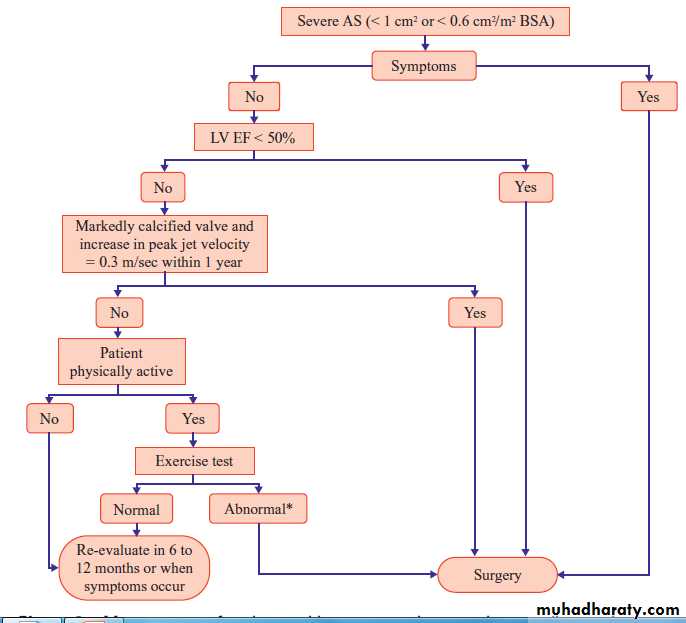 Elderly Aortic valve replacement is generally not considered in asymptomatic elderly patients with AS because of the increase in the operative risk with age. No age limit can be given and surgery may be considered in selected physically active patients without comorbidities; exercise testing is feasible and useful in these cases. Conversely, elderly patients in whom objective exercise capacity is difficult to assess