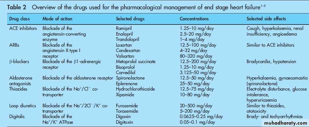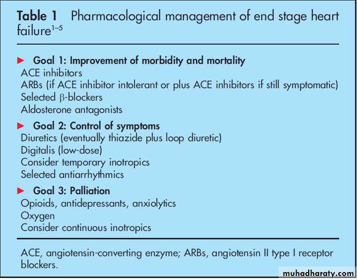 PHARMACOLOGICAL MANAGEMENT OF END STAGE HEART FAILURE