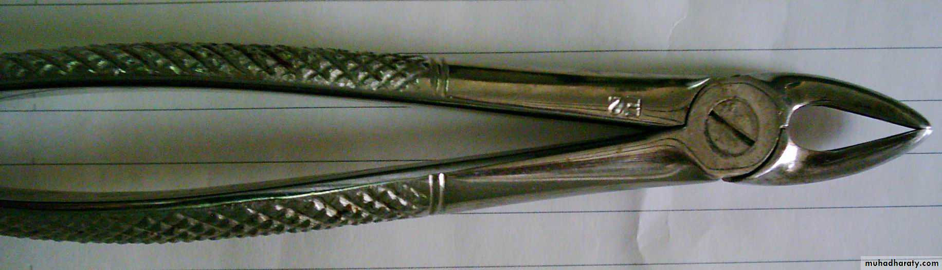 Dental forceps : A surgical instrument used in the extraction of teeth. Handle (shank) + beaks (blades)Joined by a hinge joint .