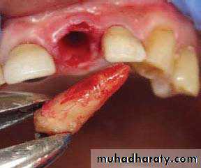 Tooth extraction :the ideal tooth extraction is the painless removal of the whole tooth or roots from its socket with minimal trauma to the investing tissues , so that the wound heals normally with no post operative prosthetic problem .