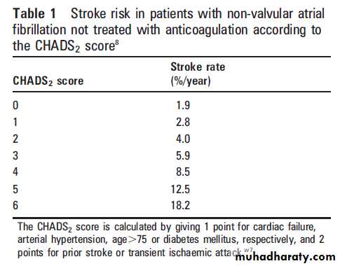 risk for thromboembolic events includeatrial fibrillation with a CHADS2 score>1, mechanical heart valves,