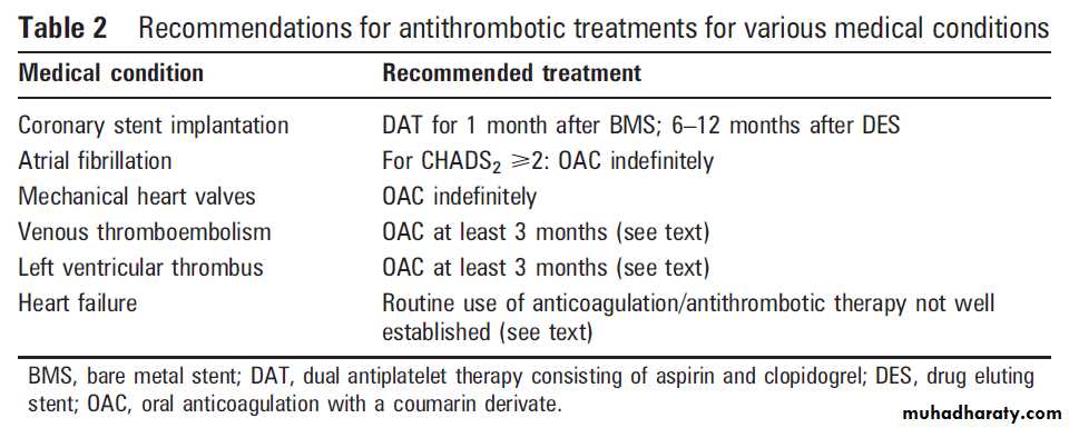 treatment for patients at risk of thromboembolic events due to atrial fibrillation, mechanical heart valves, deep vein thrombosis, pulmonary embolism and left ventricular thrombi. The number of patients who have an indication for both DAT and OAC is increasing, since more patients who are already on OAC are scheduled for percutaneous coronary interventions and some patients who are on DAT will develop a medical condition which requires OAC.