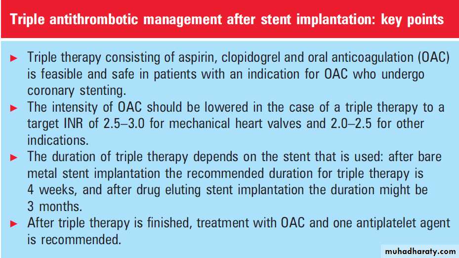 When DES are used, the duration of triple therapy might be limited to3 months.