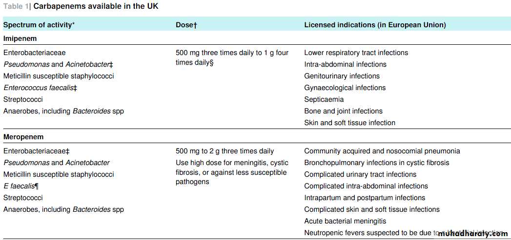 Use of imipenem-cilastatin has declined, and meropenem is now the most prescribed analogue in the UK. Both have similar indications (table 1⇓).