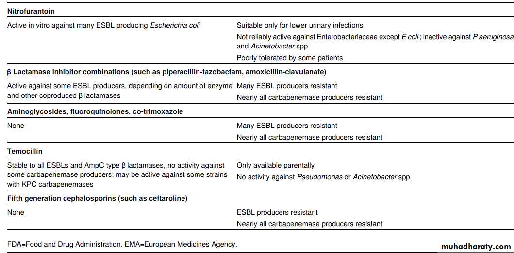 ceftaroline) are no more stable than earlier analogues to ESBLs and so are not an alternative to carbapenems in this context.Four carbapenems are available in the UK (table 1⇓). However, ESBL proliferation and the consequent increase in carbapenem use in turn selects for carbapenem resistance, and, although slow to emerge in Enterobacteriaceae, this is now accumulating via the spread of carbapenem-destroying β lactamases