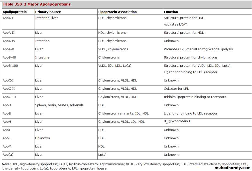 The proteins associated with lipoproteins, called apolipoproteins, are required for the assembly, structure, and function of lipoproteins. Apolipoproteins activate enzymes important in lipoprotein metabolism and act as ligands for cell surface receptors.