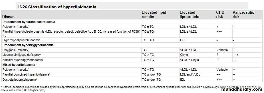 The Fredrickson classification (types I-V) adds little to clinical decision-making.Alternatively, primary lipid abnormalities can be classified according to the predominant lipid problem: