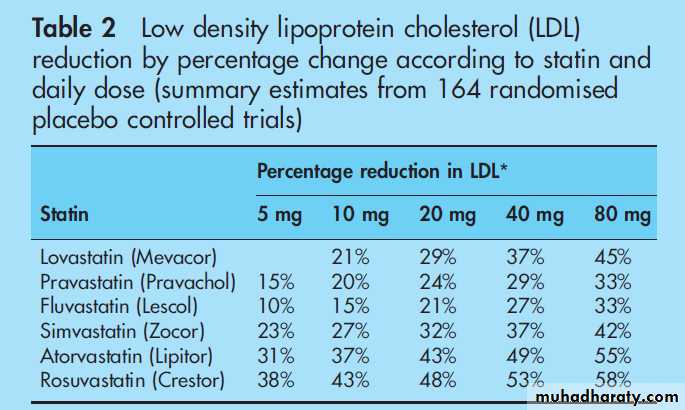 Table 2 summarises the expected reduction in LDL with various statins.