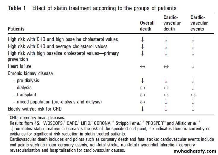 Statin treatment offers beneficial effects in termsof primary and secondary prevention of cardiovascular disease and subsequent death.