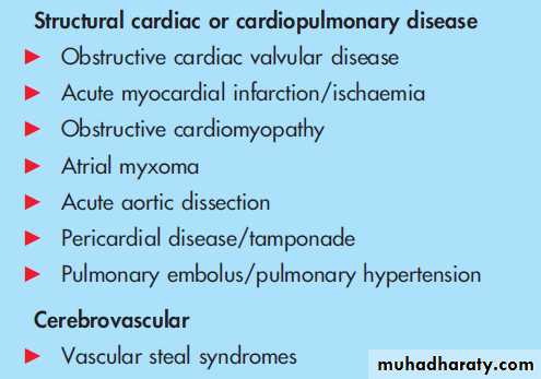 4.‘‘Structural heart disease’’ can cause syncope when circulatory demands outweigh the impaired