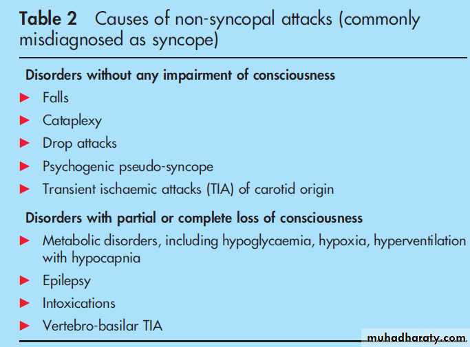 hypoglycaemia) and intoxications. In several other disorders, consciousness is only apparently lost; this is the case in ‘‘psychogenic pseudo-syncope’’, cataplexy and drop attacks.