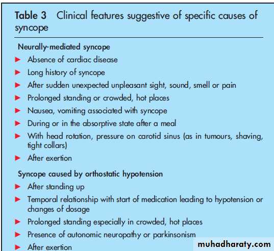 Table 1 provides the clinical classification of the principal known causes of syncope proposed by the