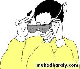 Eye protection (i.e., goggles or face shieldsWear when within 3 feet of the patient.