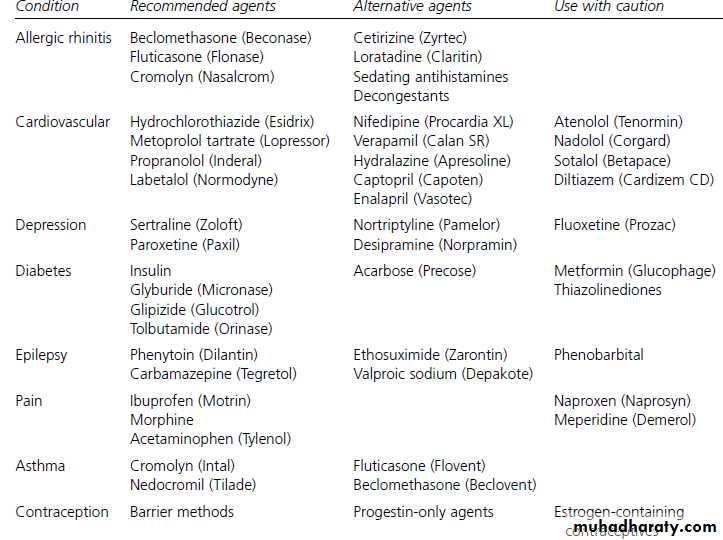Medical Disorders and Drug Use during Pregnancy and breast feeding