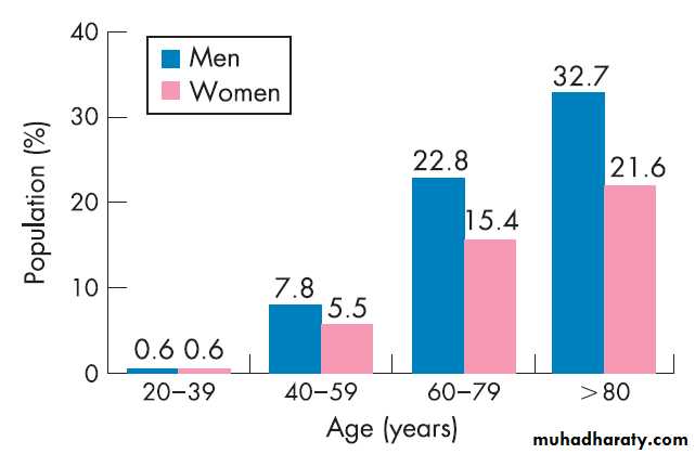Beyond 65 years of age, the prevalence of hypercholesterolaemia