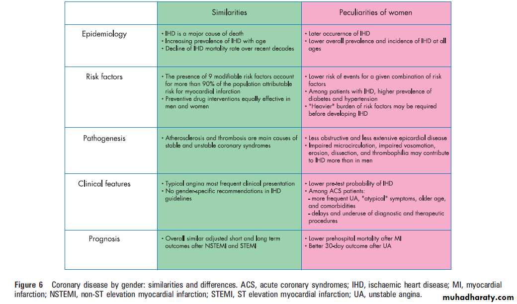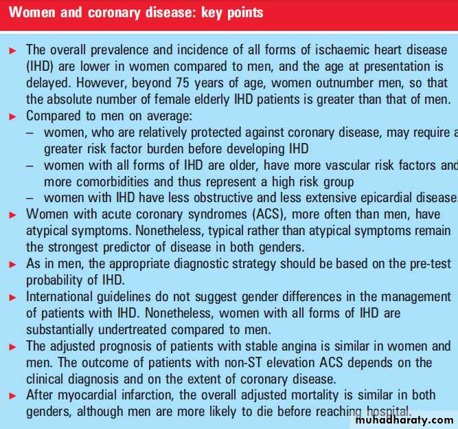 As in men, IHD constitutes a major cause of death and morbidity in women, and this fact is underestimatedby both women and cardiologists.