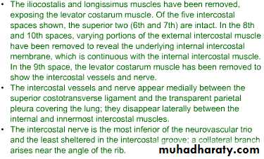 Also a separate and distinct muscle may be found in the plane of the innermost intercostal muscles and may be thought of as a continuation of that layer of intercostal musculature called intercostalis intemus (e.g., the transversus thoracis and subcostal muscles).