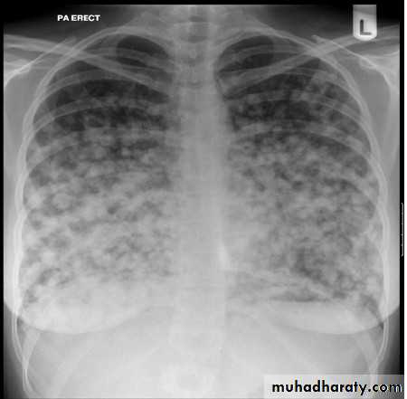 The chest x ray shows bilateral multiple nodules. Pulmonary nodules can be benign or malignant. Common benign causes include infectious granuloma, bronchial adenoma, and benign hamartoma. Malignant causes include primary lung cancer and metastases.