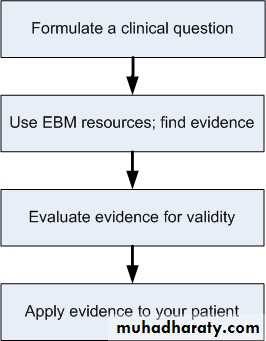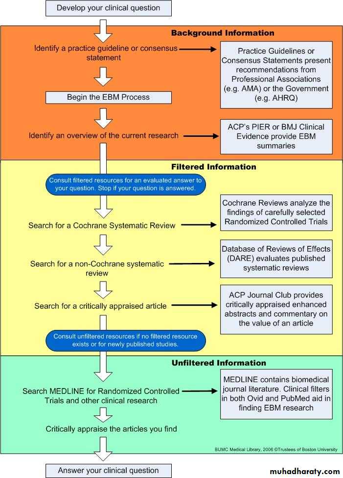 • The tenets of evidence-based medicine are that well-formulated questions about medical management, including diagnosis and therapy, can be answered by: