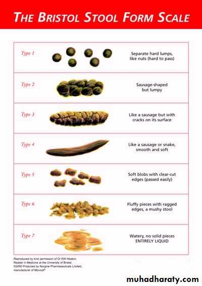 Acute diarrhoea can be defined as the acute onset of loose or watery stools usually associated with urgency and increased frequency of bowel movements. Stool consistency can be reasonably accurately described using the Bristol Stool Form score with values of 6 and 7 representing abnormally loose stools.Key points