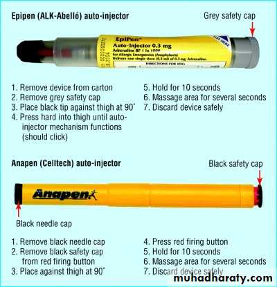 Your patient later sees an allergist who diagnoses latex allergy. The allergist advises him about avoiding latex. He also prescribes two adrenaline autoinjectors. The patient returns to you a week later and asks when he should use the autoinjectors.