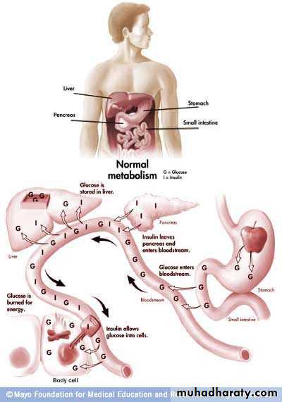 Glucose enters bloodstream from food sourceInsulin aids in storage of glucose as fuel for cells