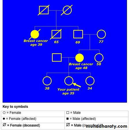 • This family history is complicated by the fact that the two women with breast cancer are separated by an intervening man - the patient's maternal grandfather.
