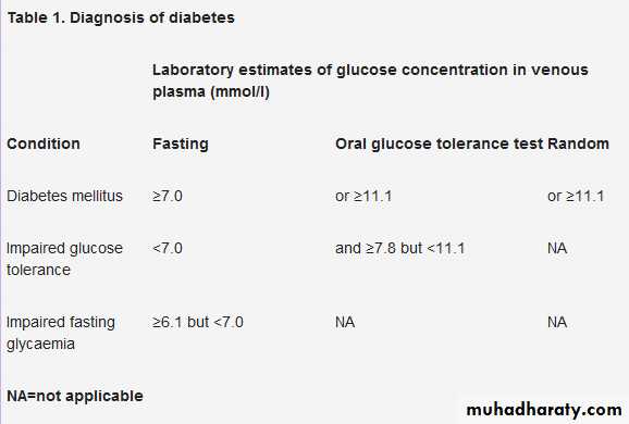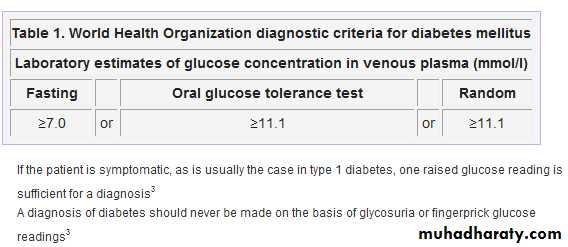 The World Health Organization's diagnostic criteria for diabetes mellitus, adopted by Diabetes UK, are set out in table 1