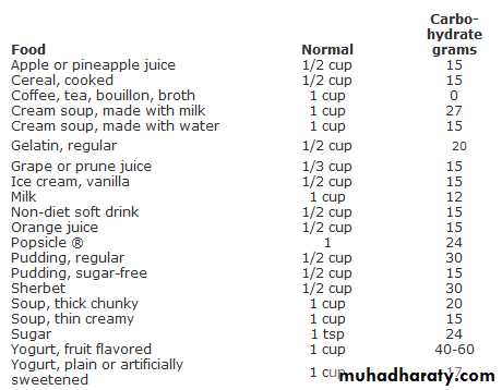 100-200mL (approximately 1 glass) every hourMaintain a regular intake of carbohydrate, regardless of blood glucose. It may be difficult to persuade some patients or relatives of this!
