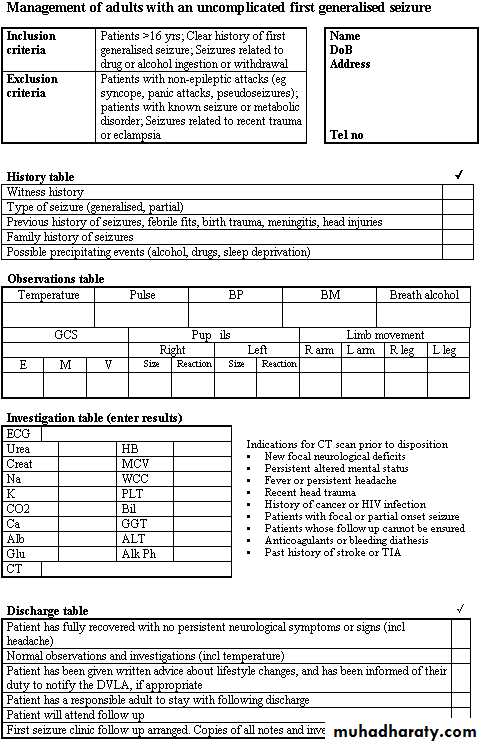 • Figure 2 Data chart for the management of adults with an uncomplicated first generalised seizure.