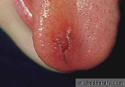 The tissue is split and is inflamed and bleeding slightly. A minor injury such as this generally requires no treatment. Tongue biting is strongly suggestive of a generalised seizure and is most often seen on the side of the tongue.