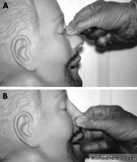 Figure 1 Applying direct pressure to the nose. (A) Incorrect. (B) Correct.