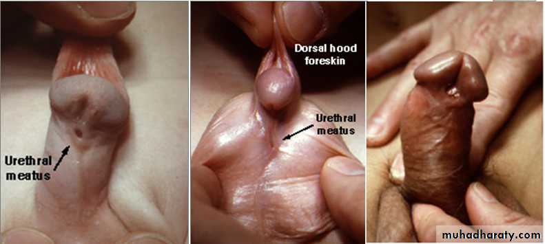 • There may be poorly developed ventral part of the prepuce( hooded prepuce).