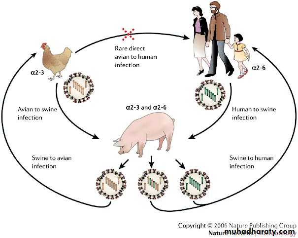Pandemics results from:1- Emergence of completely new subtypes at irregular intervals (only for type A) results from antigenic shift in HA gene