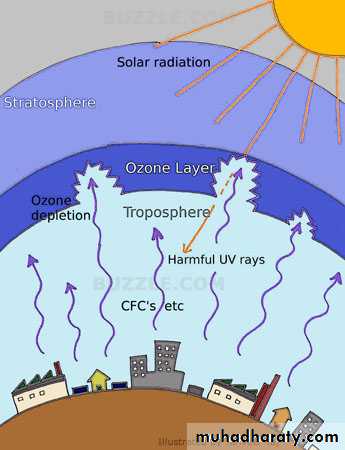 Stratospheric Ozone attenuationThe chlorofluorocarbons (CFCS), a widely used class of chemicals, would permeate the upper atmosphere where they would break down under the influence of solar radiation to produce Chlorine monoxide.