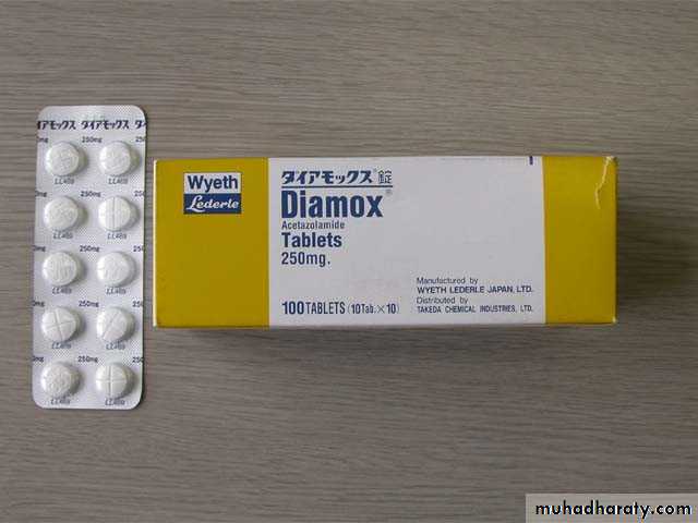 Acetazolamide is the most commonly used.(Diamox)