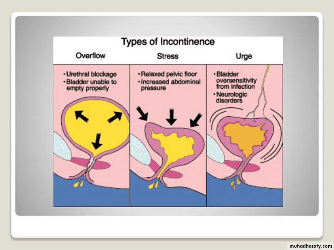 • The bladder overactivity can result from bladder inflammation, obstruction or neurological trauma