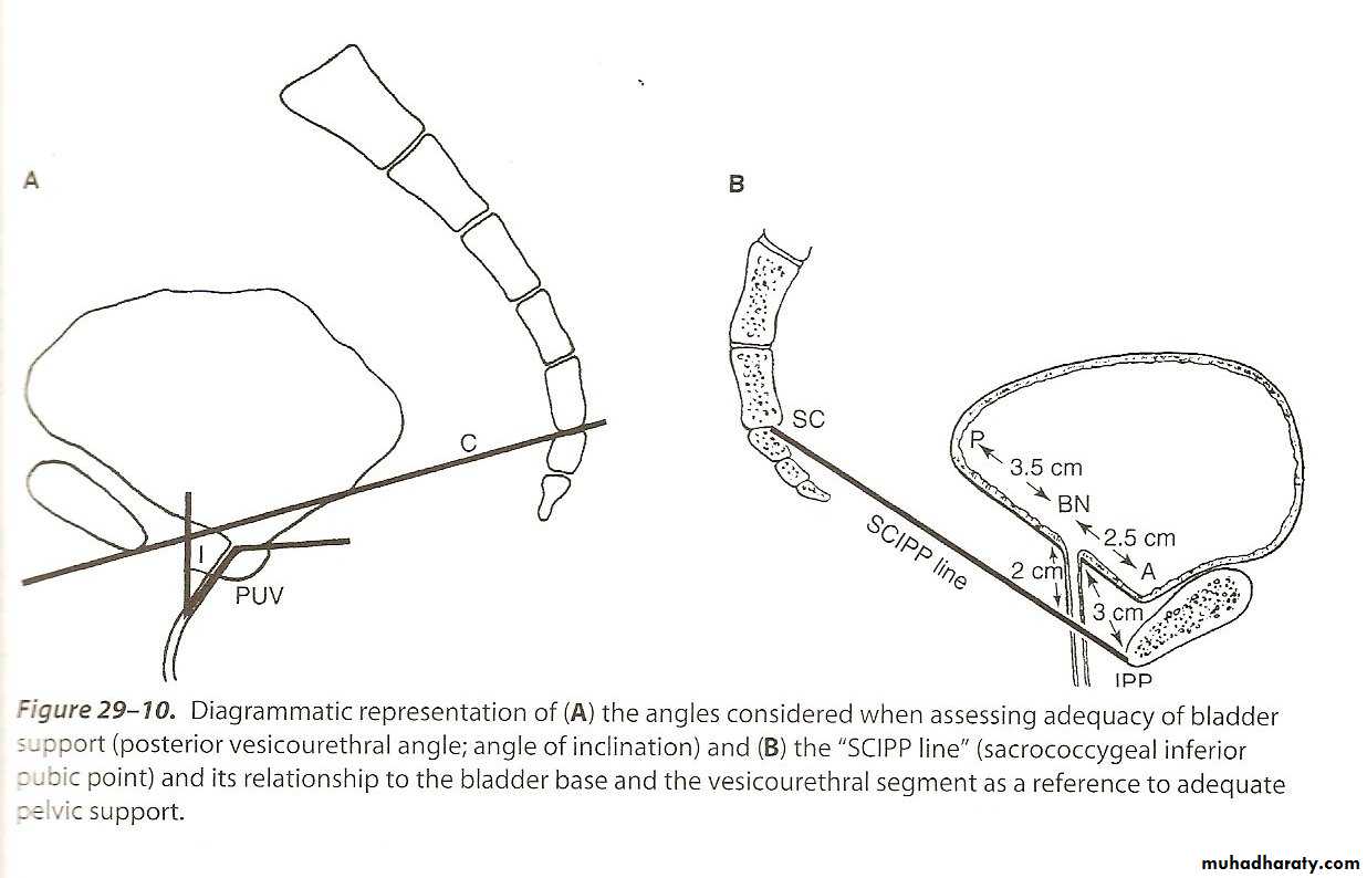 The anatomic feature is that of hypermobility or a lowering of the position of the VU segmentVarious relations between the urethra, bladder, and bony landmarks have been studied
