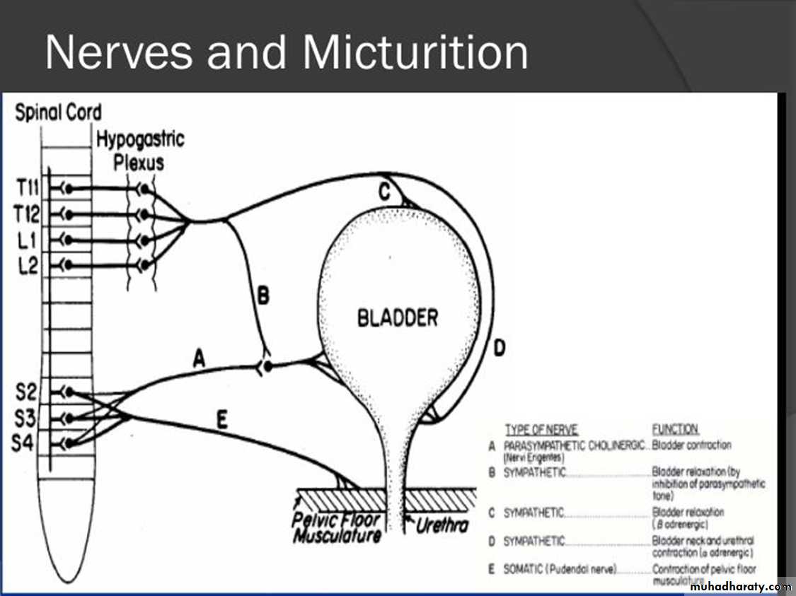 Coordinates the activities of bladder and sphincteric mechanismsControl receptive relaxation of the bladder (compliance)