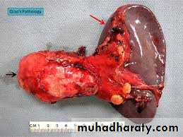 Ductal adeno carcinoma (arising in the exocrine part of pancreas) account for 90% of pancreatic tumour 2/3rd located in the head of pancreas.