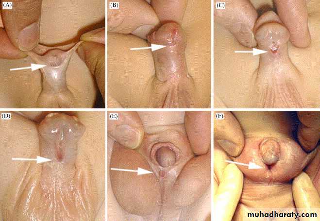 • The foreskin may be absent on ventral aspect of the penis & excessive on dorsal aspect