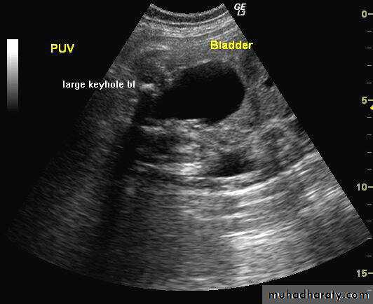 Approximately ½-2/3of boys with PUV will be suspected prenatally. Prenatal findings on ultrasonography in suspected cases may include: